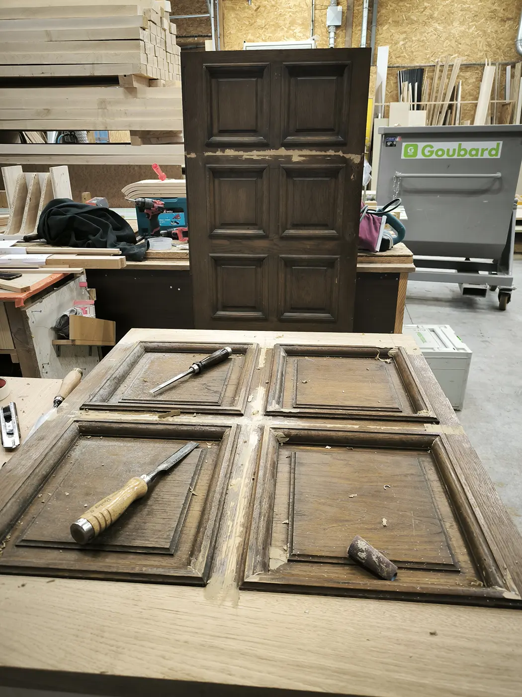 Les ateliers sont équipés des machines pour le bois massif (scie à format, dégauchisseuse, toupies…) et des machines pour l’agencement (scie à panneaux, plaqueuse, multibroches…), le tout relié à deux systèmes d’aspiration des poussières.