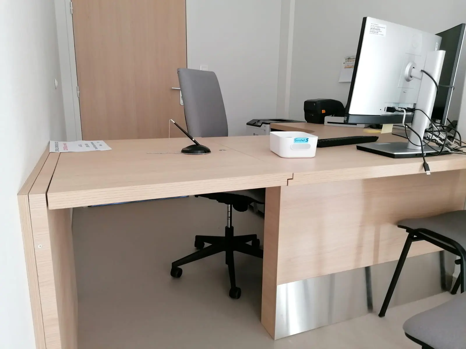 En parallèle, nous avons réalisé un nombre important d’agencements, comprenant 7 banques d’accueil, du mobilier de rangement, des éléments de cuisine, des plans vasques et des paillasses de laboratoire adaptées aux usages spécifiques du site.