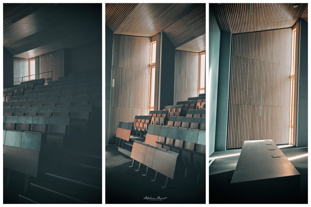 Pour le Conseil Régional Bourgogne Franche-Comté, nous avons réalisé entre 2022 et 2024 un ensemble de menuiserie intérieure et d’agencement pour l’IFPS de Besançon. Ce projet d’envergure comprenait la pose de 267 blocs-portes acoustiques et feu, 85 châssis vitrés feu en hêtre du Doubs fabriqués et vernis dans nos ateliers, ainsi que l’habillage bois de 5 amphithéâtres totalisant une surface de près de 2 000 m². Nous avons notamment fabriqué et posé un plafond en vague monté sur medium avec laine acoustique ainsi que l’agencement de l’accueil, de la bibliothèque et d’espaces détente.