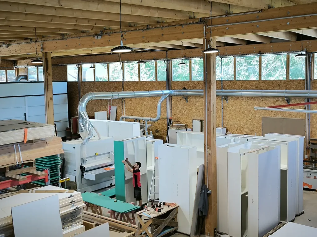 - Pour la cuisine : 2 kitchenettes et 2 plans de travail en médium Valchromat