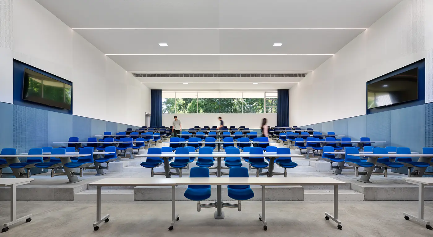 L’enjeu principal de ce projet résidait dans la mise en œuvre d’un agencement et d’habillages muraux en Valchromat, avec une exigence forte de rendu visuel, tout en respectant les contraintes réglementaires, acoustiques et de sécurité incendie.